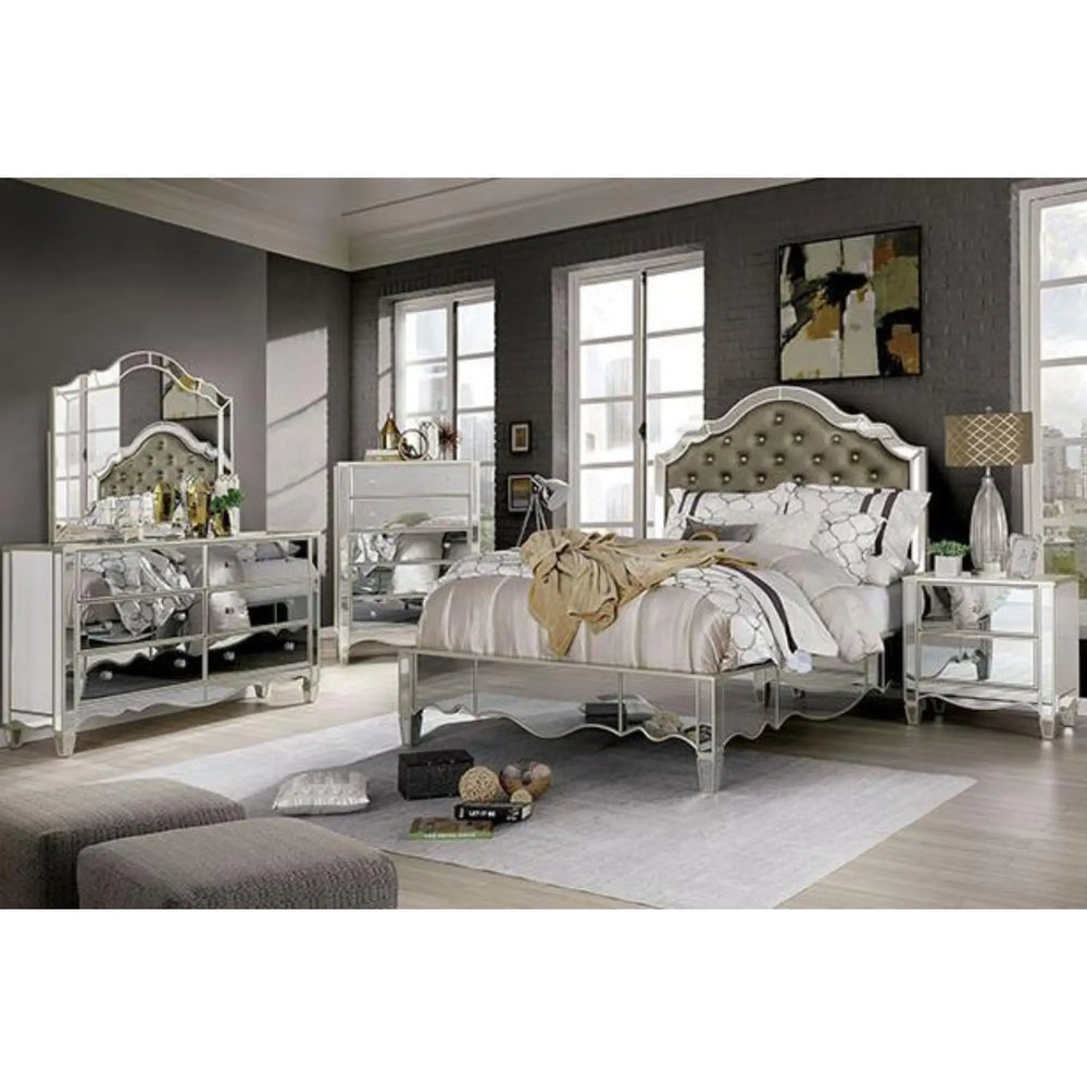 Transform your bedroom into a sophisticated retreat with this stunning bedroom set. Featuring a sleek white finish with silver accents, this set blends modern elegance with timeless style. The bed, dresser with mirror, and two nightstands provide both beauty and functionality, creating a cohesive and upscale look for your space. Whether you're looking to refresh your décor or design a luxurious escape, this bedroom set delivers the perfect balance of style, comfort, and storage.