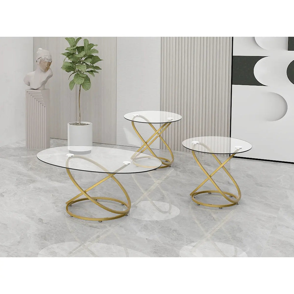 Transform your living room into a haven of sophistication with our glass coffee table set. The brushed gold metal finish and the lustrous glass tabletop combine to create an elegant centrepiece that exudes luxury.