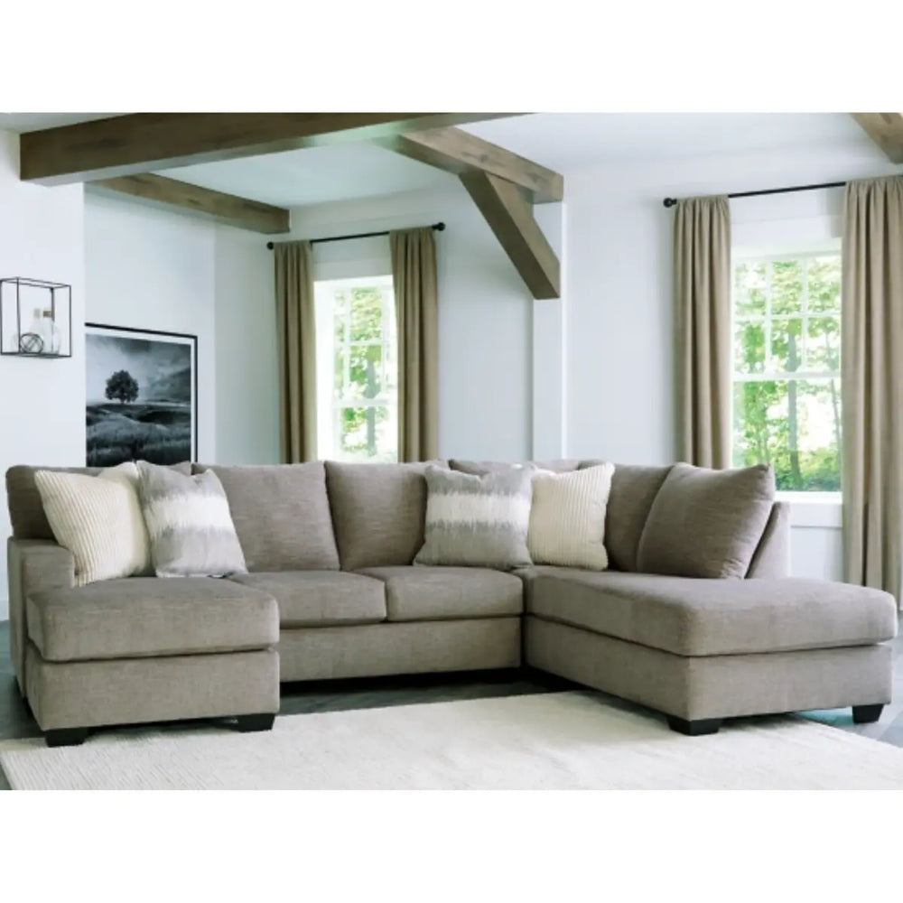 Ashley Creswell Sectional with Chaise in Stone - Grey is backordered and will ship as soon as it is back in stock.