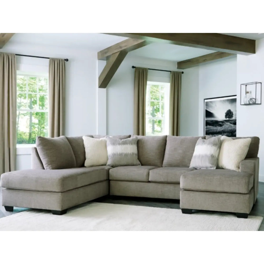 Ashley Creswell Sectional with Chaise in Stone - Grey is backordered and will ship as soon as it is back in stock.