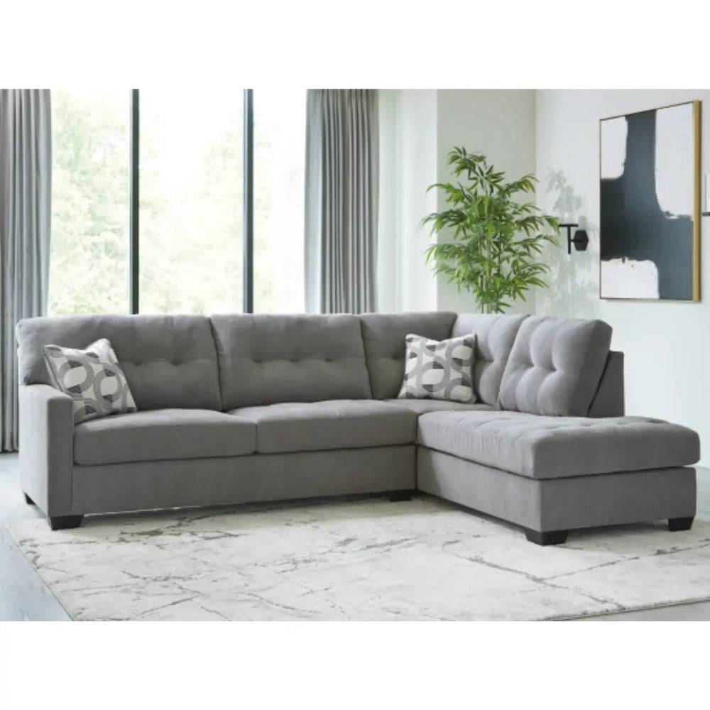 Reliable comfort, reimagined. Suitable for a variety of spaces, this chaise sectional invites you to say hello to approachable, everyday style. It expertly balances classic details, like a tufted back, with a contemporary structure. Satisfyingly soft, multi-hued upholstery rounds out the relaxed feel of this smartly designed piece.