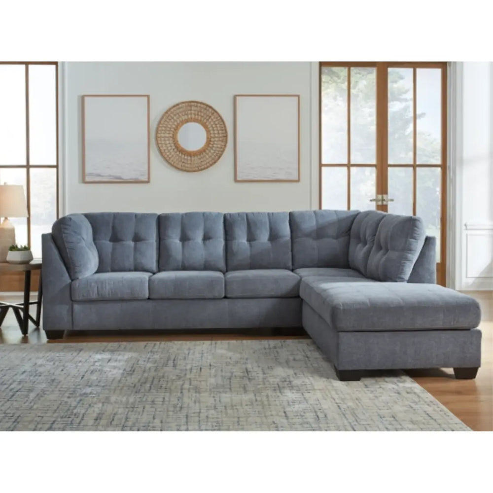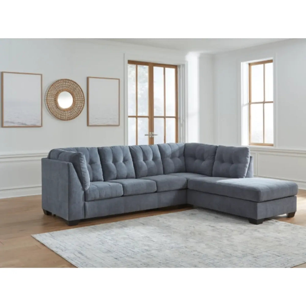 Ashley Marleton Sectional with Chaise in Denim - Blue is backordered and will ship as soon as it is back in stock.