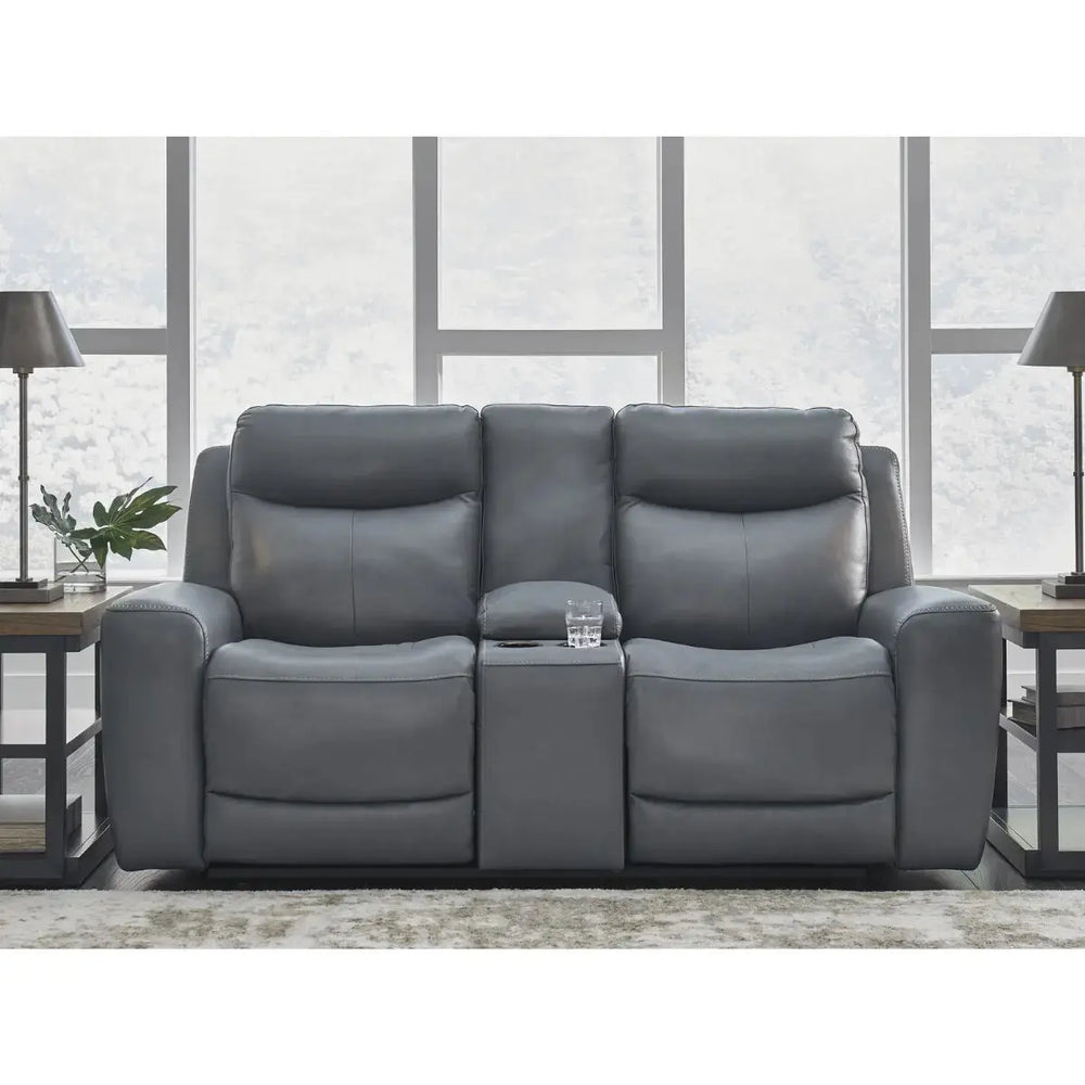 Ashley Mindanao Reclining Sofa Set in Steel - Grey / Sofa+Loveseat is backordered and will ship as soon as it is back in stock.