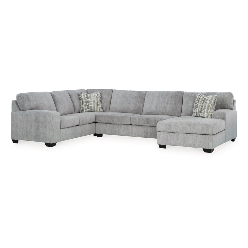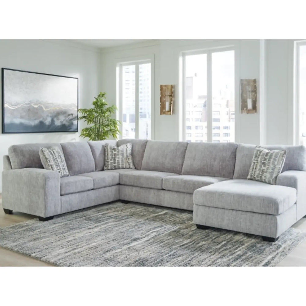 Ashley Pembrey Sectional with Chaise in Pewter - Grey is backordered and will ship as soon as it is back in stock.