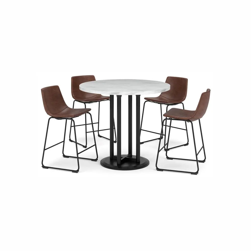 When nothing but the best will do, you’ll find this 5-piece dining set checks all the boxes. Taking a stance for ultra-contemporary design, this modern version of the classic pedestal table features the look of authentic Carrara marble while tubular metal bases and contoured bucket seats on the bar stools set a charmingly vintage tone. Raise the bar on clean-lined style.