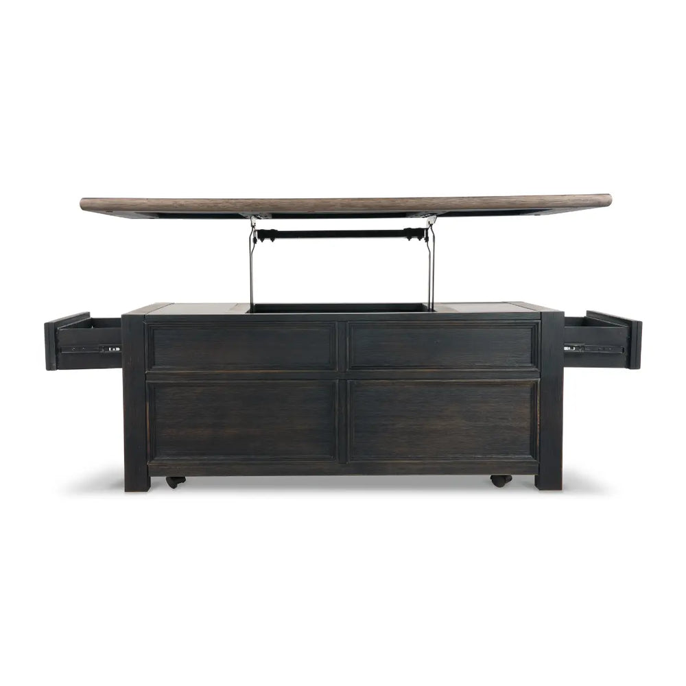 Shabby chic with a hint of down-home country, this lift-top coffee table is all the talk of today’s design world. Wood grain shows through the weathered gray-brown top in all of its earthy pleasure. The framed drawers, adorned with lovely traditional hardware, make it easy for you to store your belongings in style. And the table's lift top transforms your space into a workstation without a hitch.