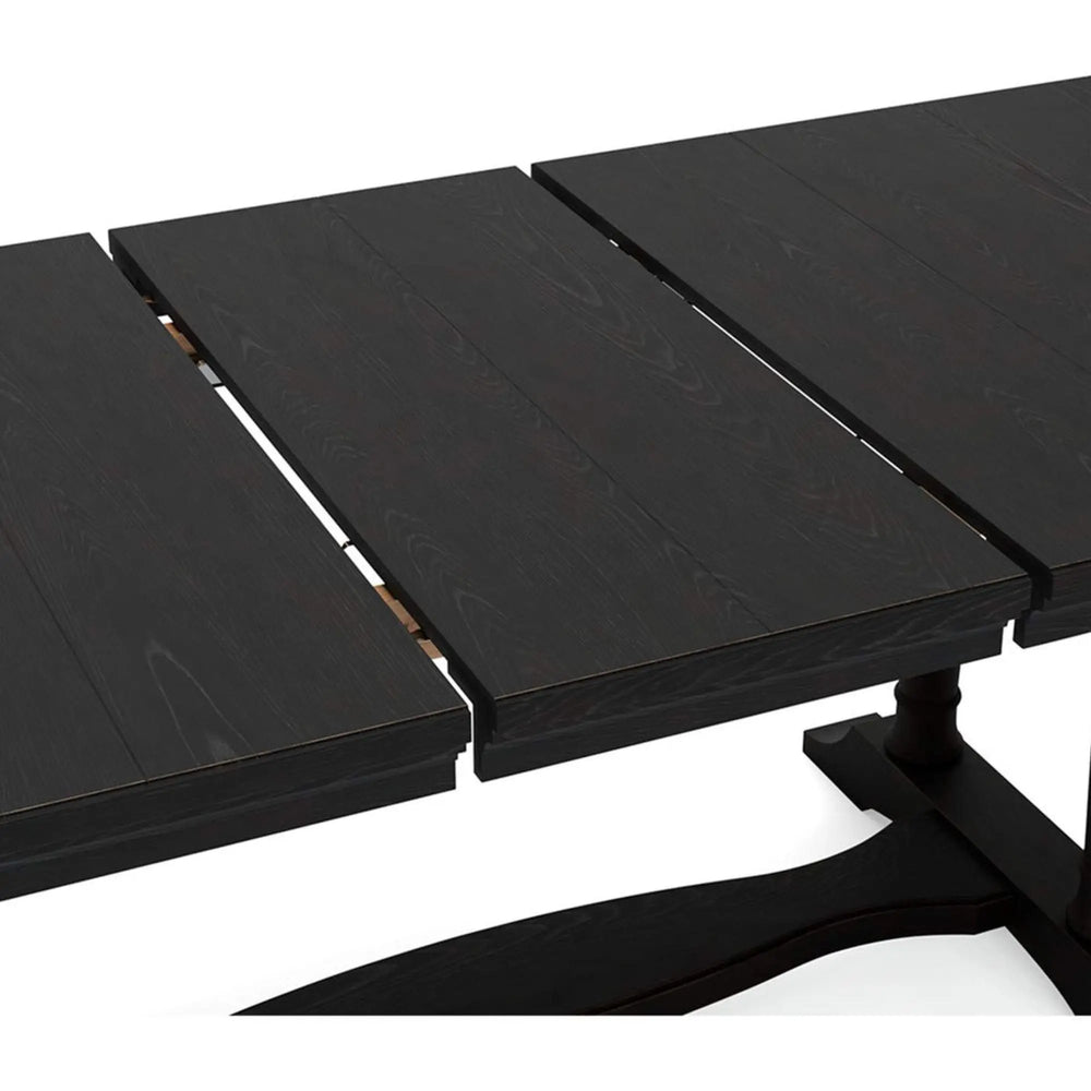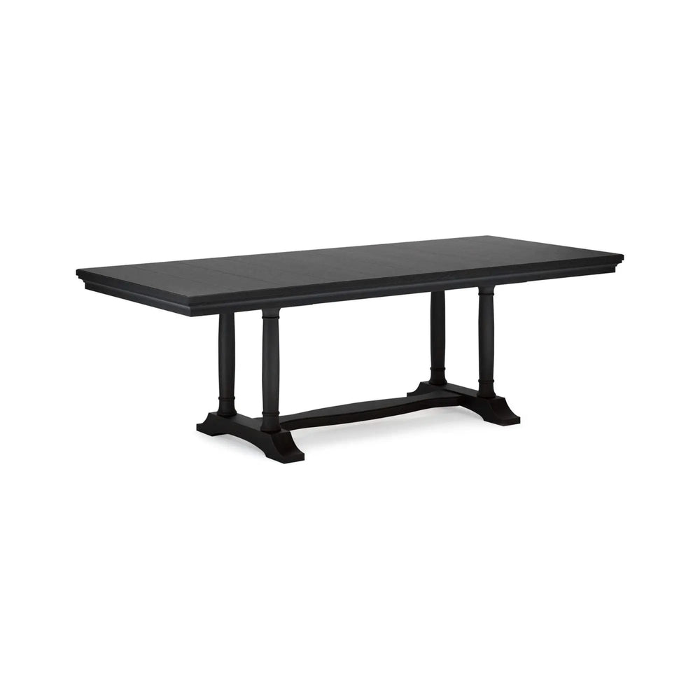For those who love the classic profiles of traditional design—but want to forego the overly formal details—behold this dining set. A rich layered black finish offers a subtle sense of gently aged charm, while the stylish double trestle base adds a distinctive touch. The extension leaf means there's always room for more guests to linger longer. What a delicious take on urban revival design.