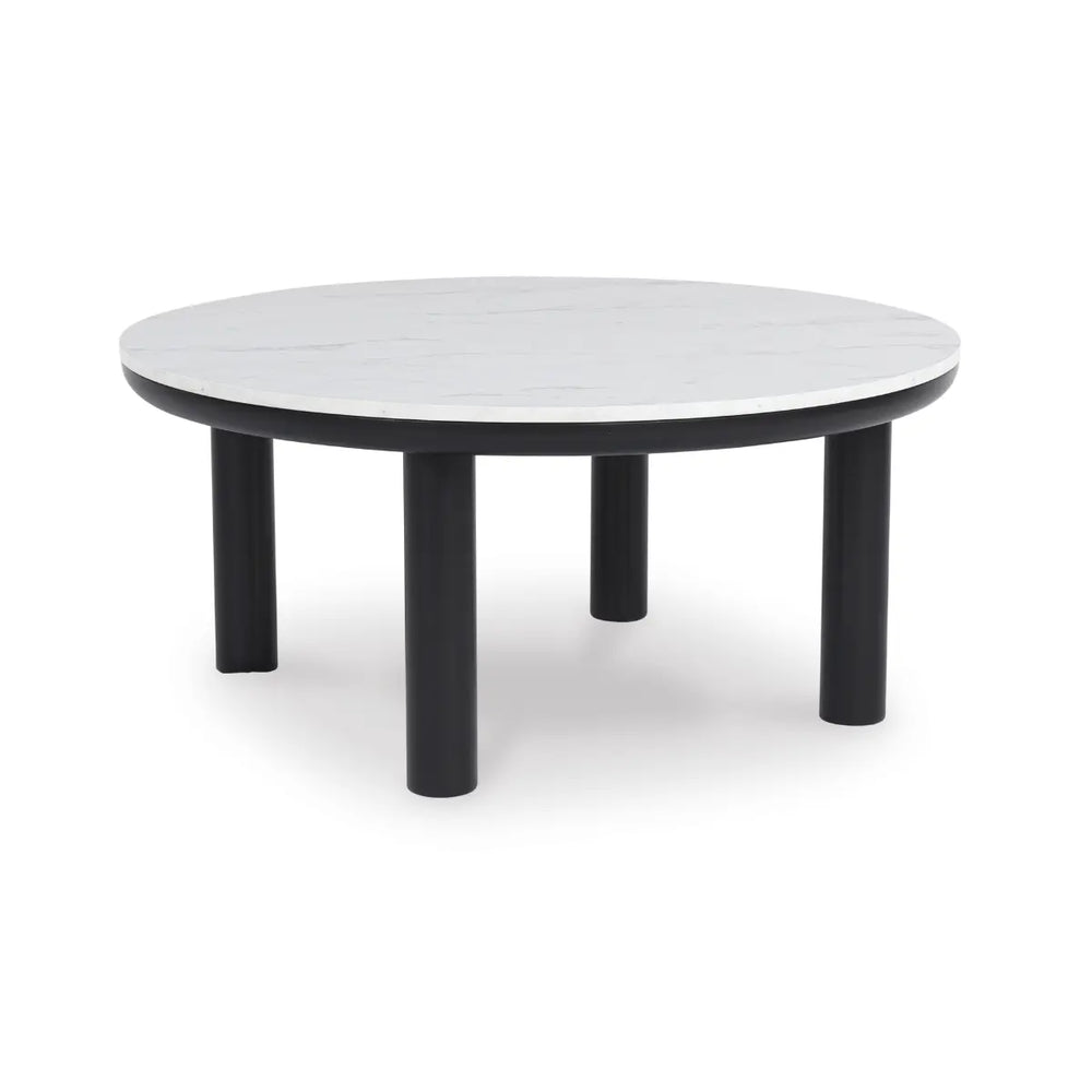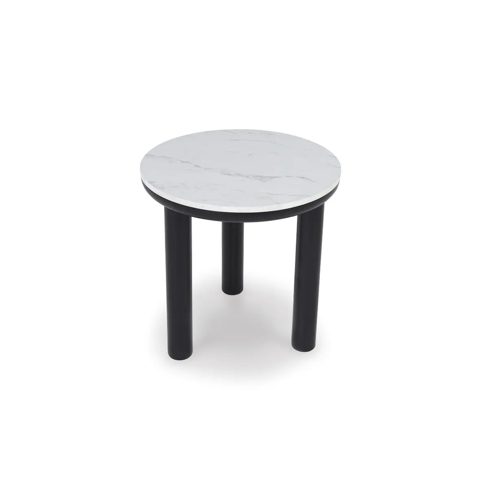 Clean lines meet cool curves with this accent table set. Simple dowel legs and a black finish lend a modern vibe, while replicated white marble tops complete the casual lifestyle design. With their varying heights, these versatile tables can be used together or individually for functionality and style.
