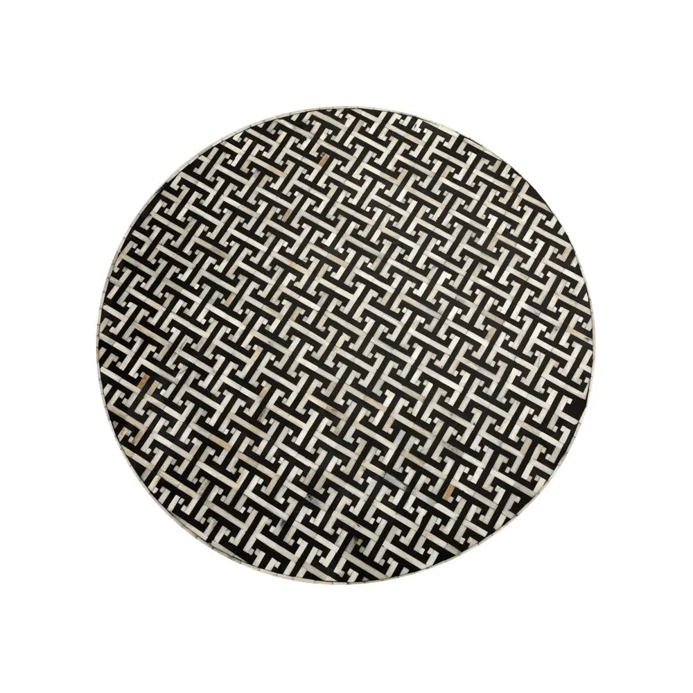 Ornate ordeals. The Augustine bone-inlay coffee table features intricate hand-carved bone detailing that gives this piece its signature ornate look. Applied entirely by hand, each individual piece is meticulously placed to create a pattern that brings faraway mosaics and fine craftsmanship to mind. Low profile and round shape complement a variety of decor styles. Down to the very last detail, from the hand-carved inlay to the brushed gold pedestal, this piece will serve itself as a coveted design waiting to be featured in your home.