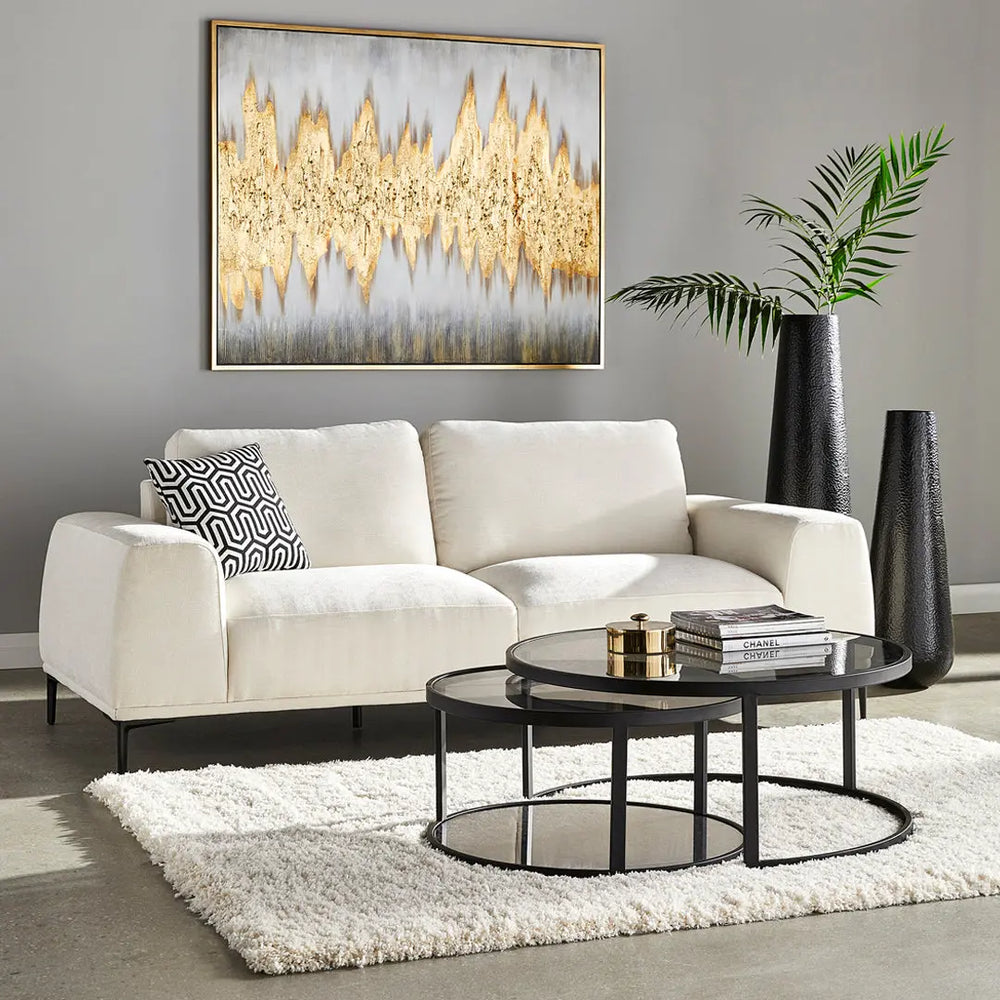 The Avon nesting coffee table is the ultimate hack to space-saving occasional tables. The set of 2 coffee tables hosts ample surface space for snacks, drinks (with coasters, of course), or any home decor. Simply pull out the smaller table for extra surface space. The smaller table features a mirror shelf base for added storage. Feeling cramped? Now you see it, now you don't, effortlessly slide in the smaller table for a spacious feel.
