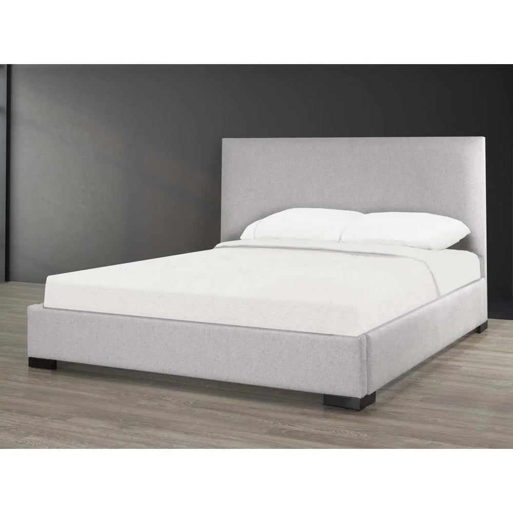 Designed to complement contemporary and modern bedrooms, the Baltimore Platform Bed by Five Brothers Upholstery is a perfect blend of style and functionality. Offered in an elegant shade of grey or beige and with a modern low profile, this platform bed frame adds a sophisticated touch to any space. The sturdy wooden bed frame is made from solid spruce and maple wood and has solid wood center support beams for guaranteed frame strength and stability.