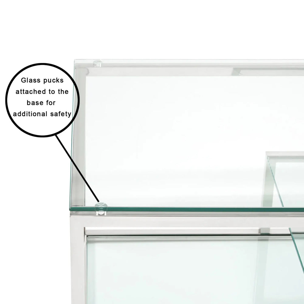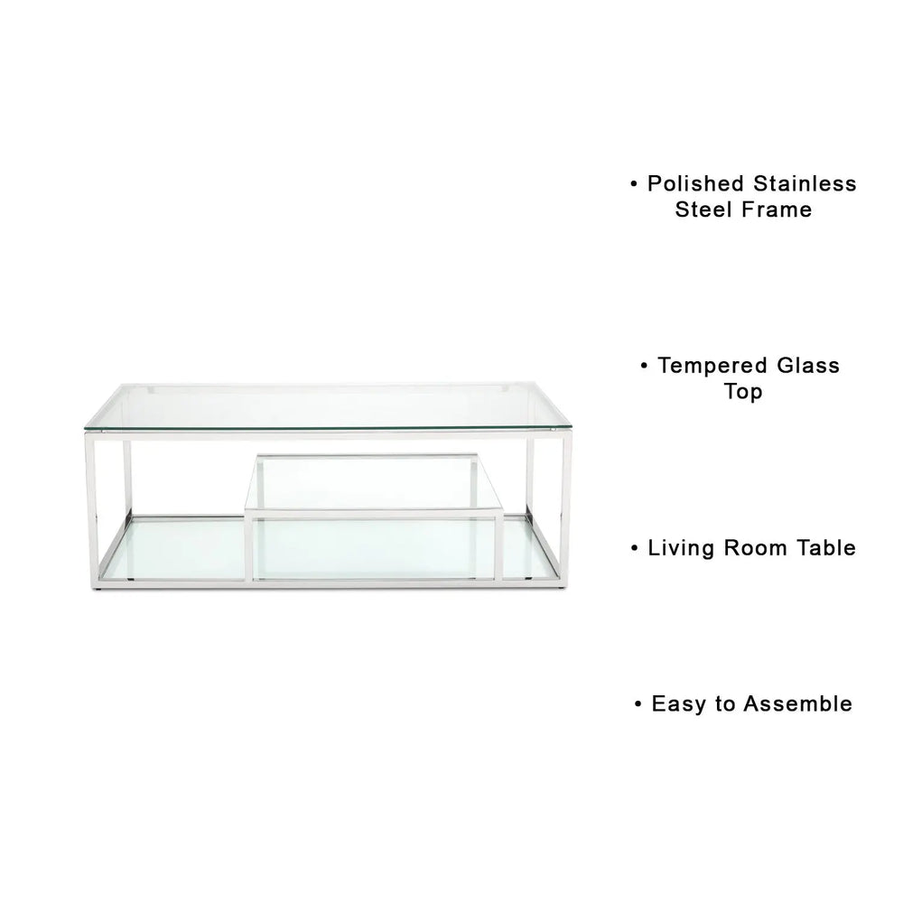 The Barolo Steel Coffee Table is a stylish and functional piece of furniture. With its tempered glass top and polished stainless steel frame, it exudes a modern and sophisticated vibe. The tempered glass not only adds a sleek and contemporary look but also provides durability and safety. The polished stainless steel frame complements the glass beautifully, creating a striking visual contrast and adding a touch of elegance to the overall design.