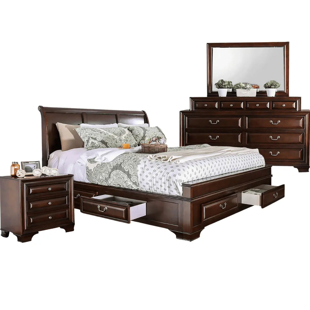 4 pc Set included: bed, dresser, mirror and 1 night stand