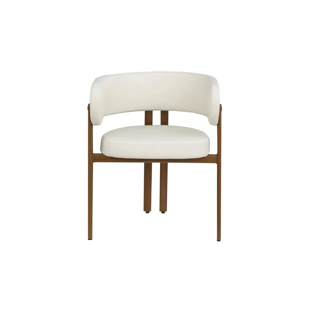 The Belisse Dining Chair, available in a set of two, offers a chic and modern touch to any dining space. These chairs feature a sleek metal frame that ensures both durability and stability, while the light wood finish on the legs adds a warm, natural contrast.