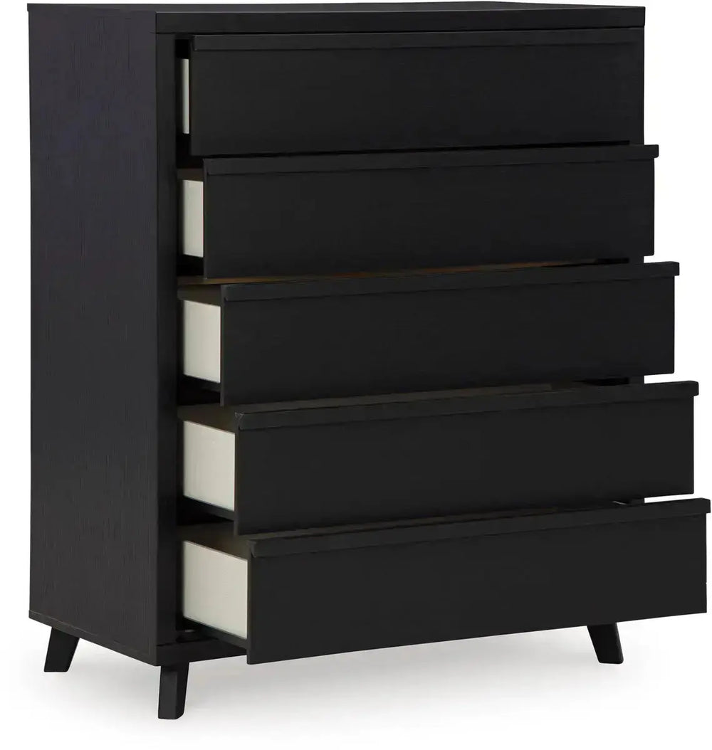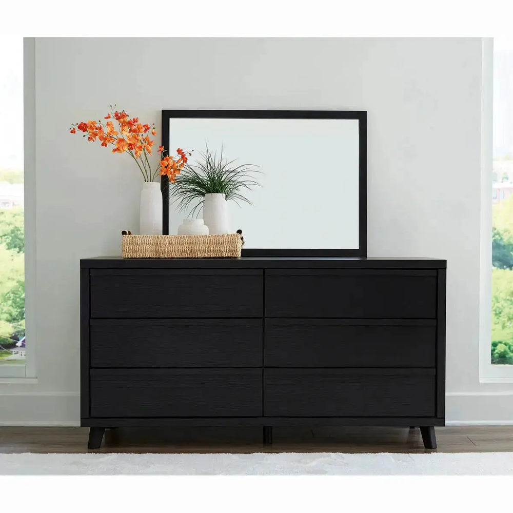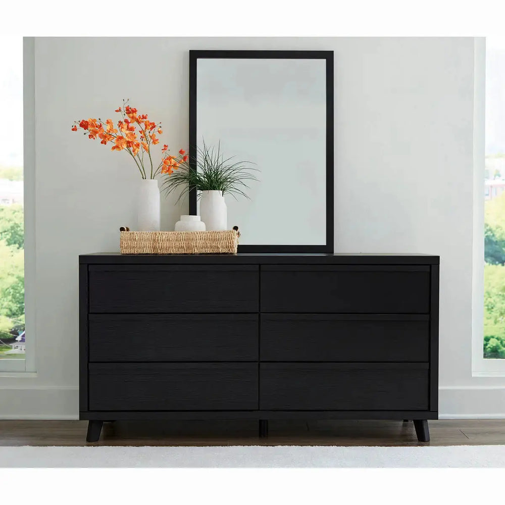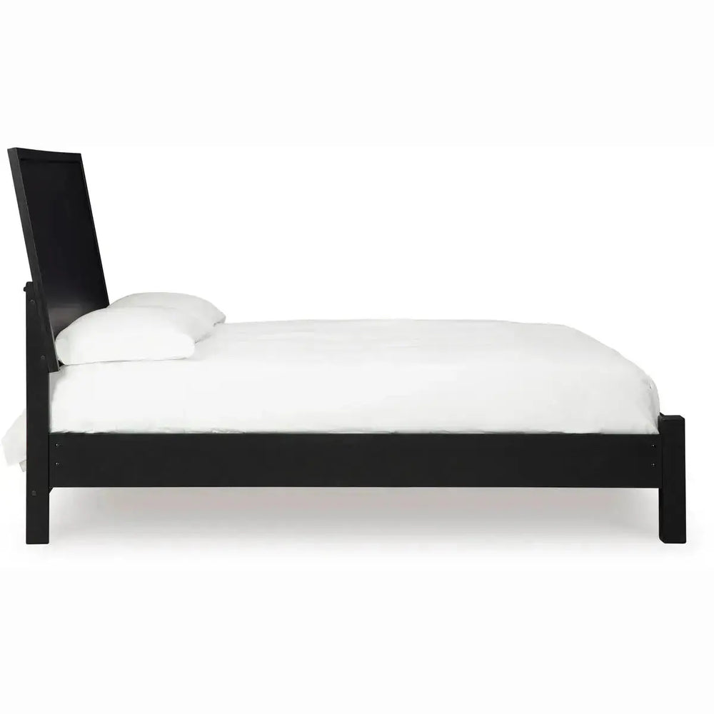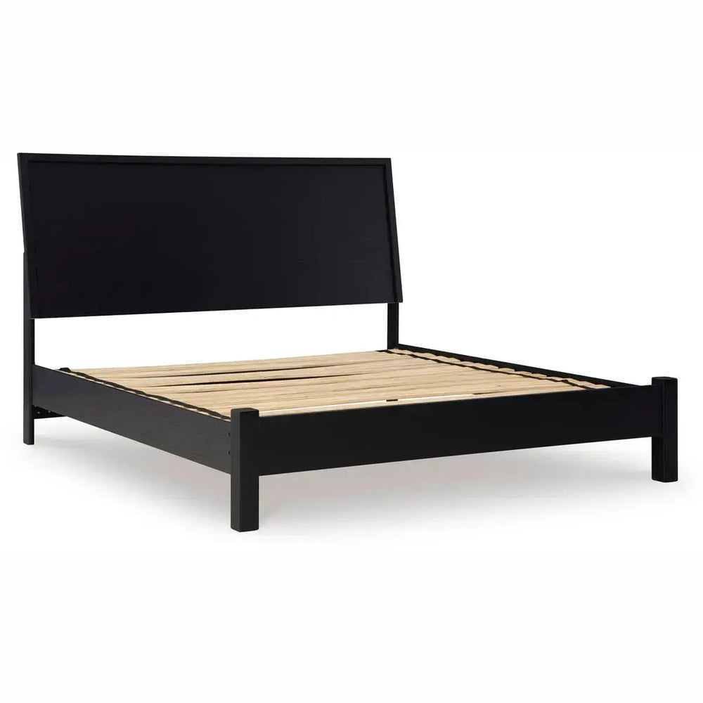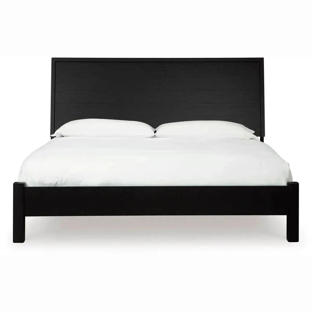 Sophisticated style for the savvy shopper. This panel bedroom set prioritizes affordable, on-trend design. Its subtle replicated texture recalls the natural beauty of wood, highlighting the clean-lined styling. And a matte black finish savvily suits different approaches to modern aesthetics. Mix and match with light and bright hues, or pair with other dark tones for a moody look.