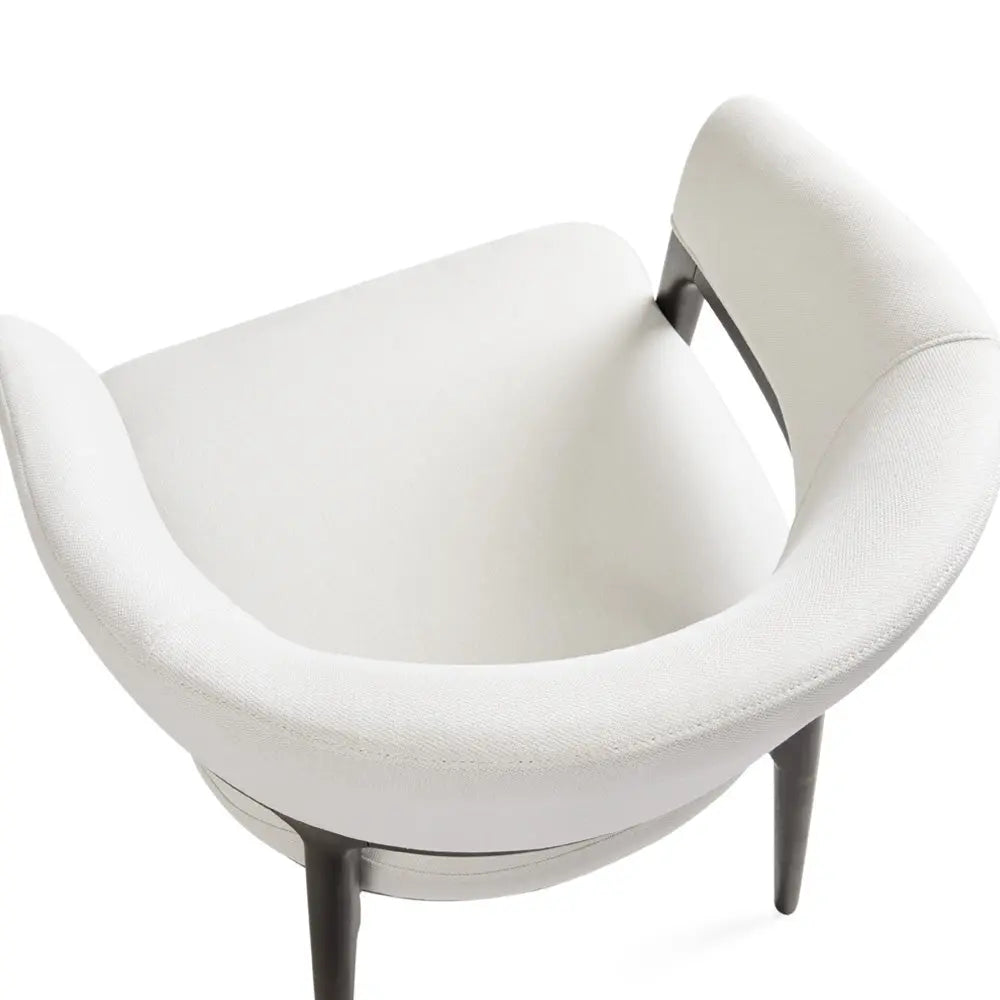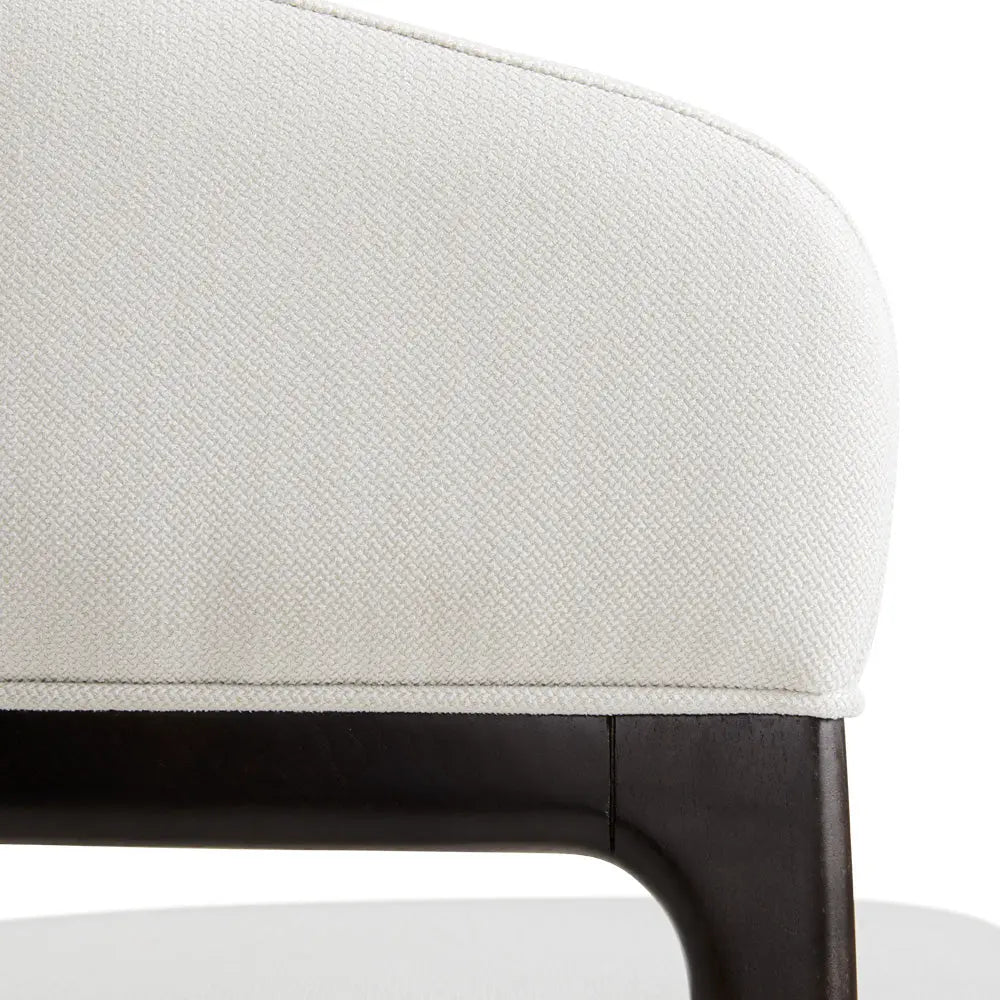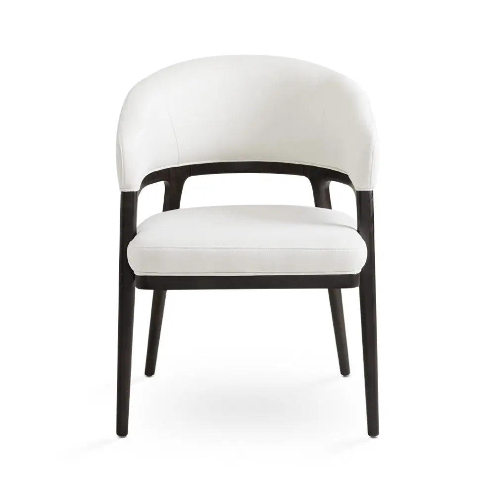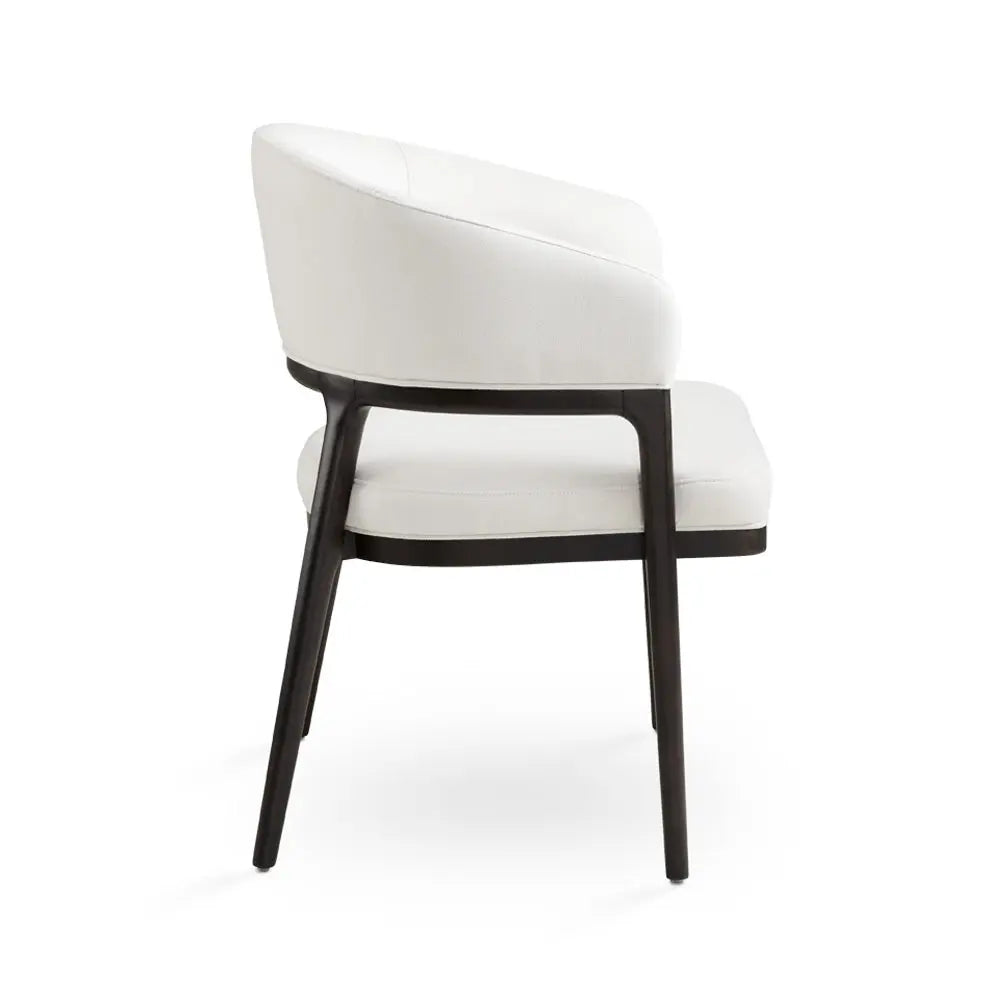 The Erica Dining Chair in White features a stunning design that combines modern elegance with timeless sophistication, making it a standout piece in any dining space. Supported by ash wood legs with a walnut finish, the Erica Dining Chair boasts both style and durability. The rich tones of the walnut finish beautifully complement the pristine white upholstery, creating a striking contrast that enhances the chair's visual appeal.