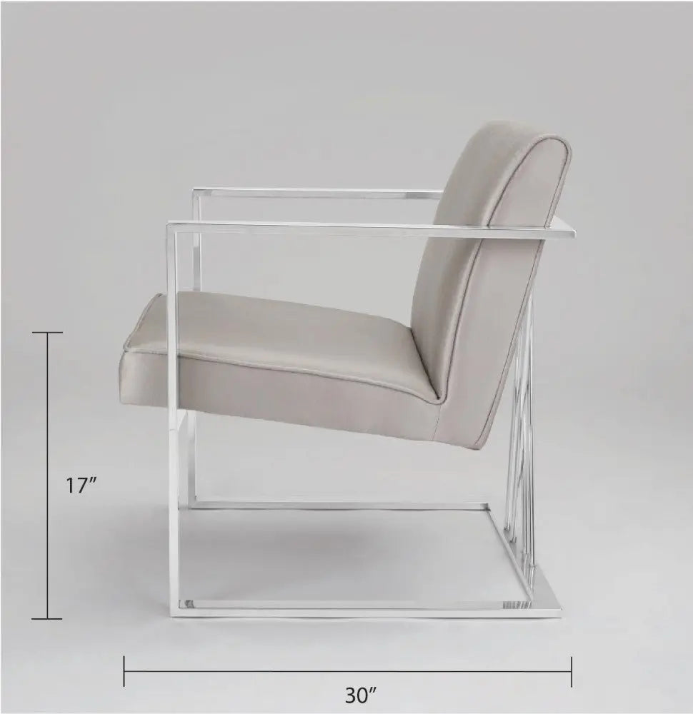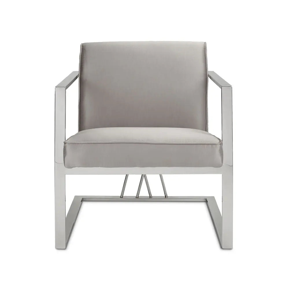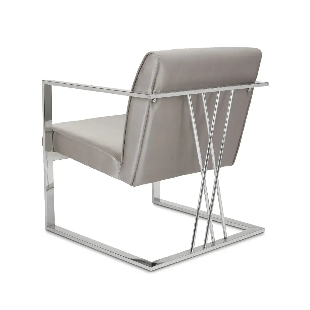 Super-sleek. The Fairmont grey accent chair boasts a modern contemporary frame with a unique doubled crossed base design. The design gives the illusion of a floating seat, as supported by the polished stainless steel frame. Add a touch of sophistication to your home decor and accentuate all styles of your existing interior design.