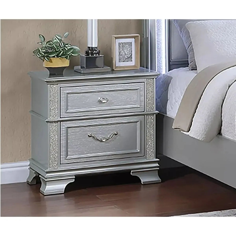 Glamour LED Bedroom Set - Silver / Bed+Dresser/Mirror+1Nightstand / King is backordered and will ship as soon as it is back in stock.