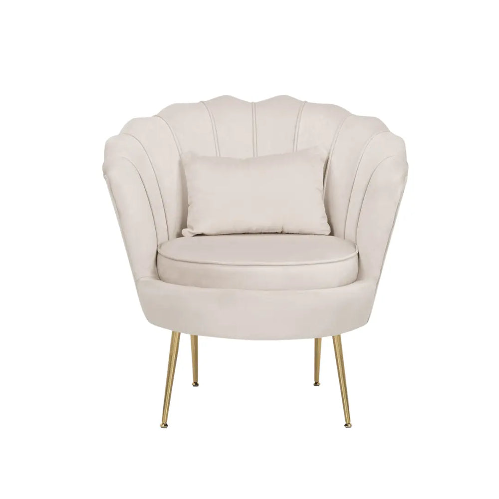 Upgrade your living room decor with our Roma Flower Accent Chair. The premium velvet fabric in a solid hue seamlessly blends with any color scheme, while the vertical channel tufting on the back adds charming detail. This classic and contemporary barrel chair is made with a sturdy solid and manufactured wood frame, filled with high-density foam for exceptional comfort and support. The slender golden metal legs provide a modern touch, while the scalloped seashell edges give a touch of elegance to this timeless piece. Whether you're looking to create a conversation area or a cohesive seating arrangement, this set of two chairs is ideal for any space including living rooms, offices, bedrooms, and more.