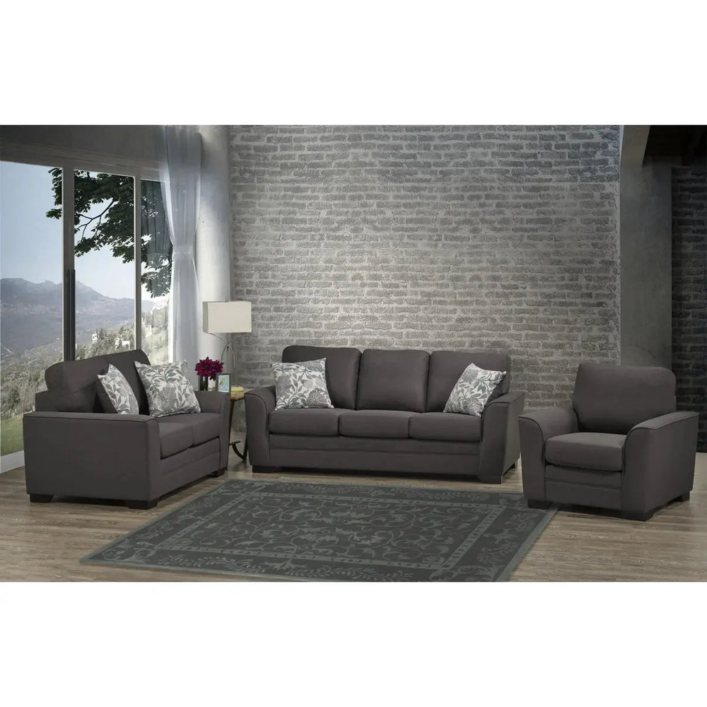 Sit back and relax in the casual comfort of the Rayado 4416 Sofa Set in Charcoal Grey. Enjoy the simple yet elegant design, bringing you affordable luxury, and lasting value. Proudly made in Canada.