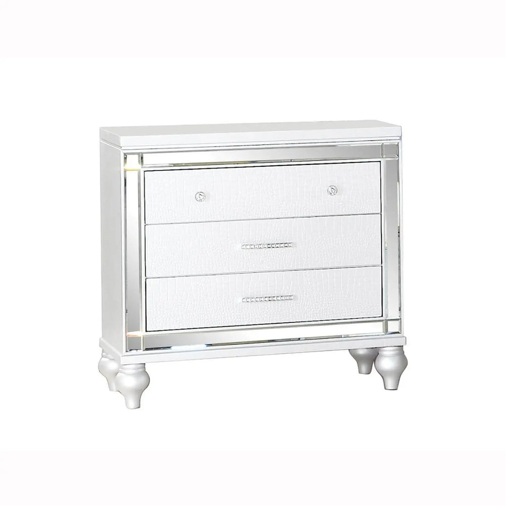 This bedroom set will add extra colour to your room. This mirror design all around provides your bedroom a more dazzling appearance. The bedroom set's sophisticated design strikes a mix between current and excellent taste. The elaborate workmanship on this Bed will undoubtedly bring great splendour into your home. The Bed with White Finish Wood is ultra-contemporary in style and proportions, adding modern flair to your bedroom. The headboard of this exceedingly attractive bed is upholstered in crystal tufted fabric. All of the drawer fronts have diamond drawer pulls, and the top has a sleek feel that adds to the stunning splendor of the bedroom.