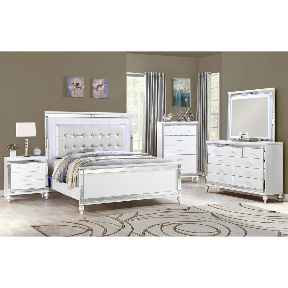 The headboard has an LED light, which will enhance the ambiance of your bedroom. Each case piece is enhanced with a mirror accent put within the frame. Matching nightstands and other bedroom set items complete the overall design to your liking. The Mirror has an LED light that will help you take pictures or get ready every day. This popular pattern will add glam to any bedroom. Enjoy the fine details while awake and in peaceful sleep at the conclusion of each day.