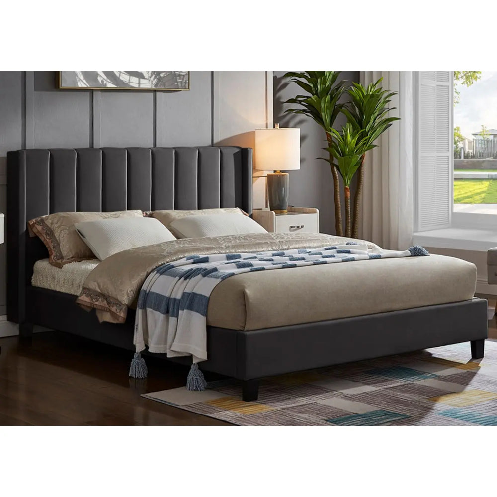 Enhance your sleeping space with our contemporary bed featuring deep panel tufting and luxurious velvet fabric. The elimination of the box spring requirement simplifies setup and ensures a clean, modern look. Choose a neutral color that suits your style and elevate your bedroom to new heights of elegance and luxury.