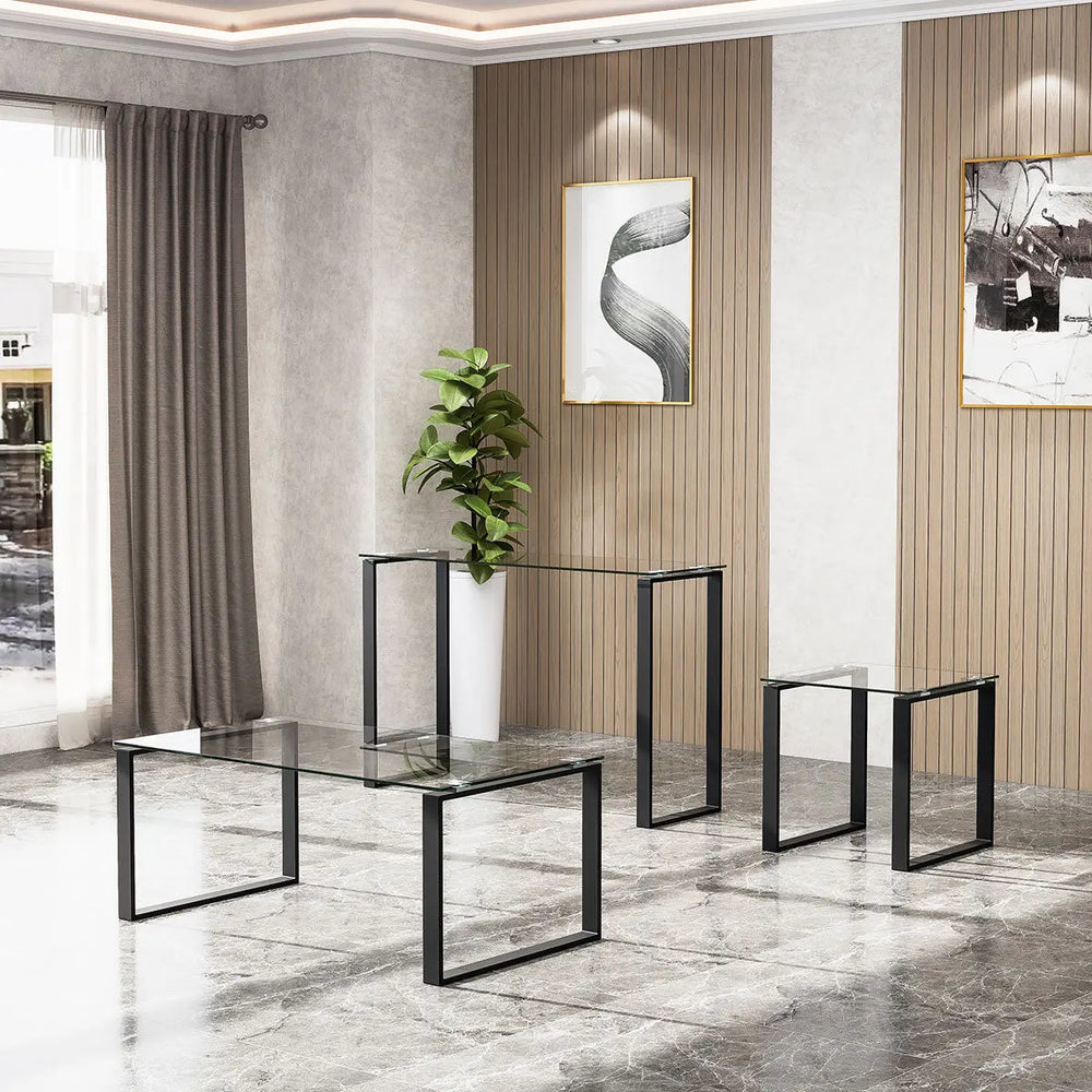 The neutral color palette of matte black and clear glass allows our coffee table set to seamlessly integrate into various decor styles. Whether your space is contemporary, traditional, or eclectic, it’s a versatile addition.