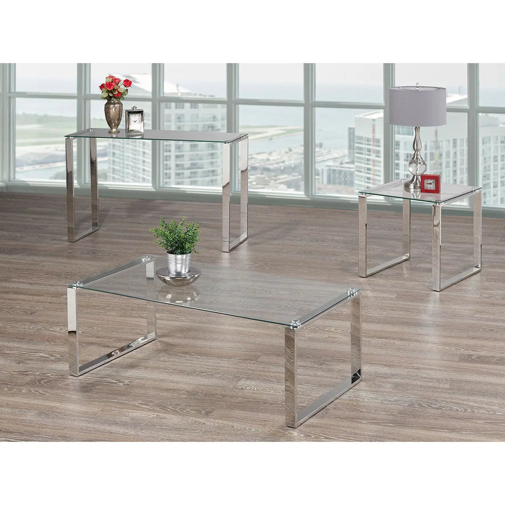TT 3-Piece Glass Coffee Table Set in Chrome