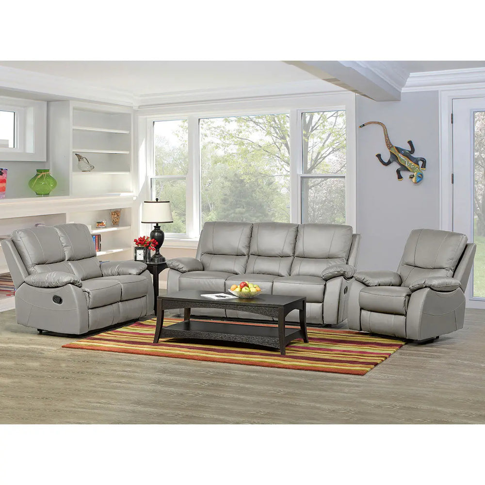 TT Timeless 3pc Leather Reclining Sofa Set in Light Grey