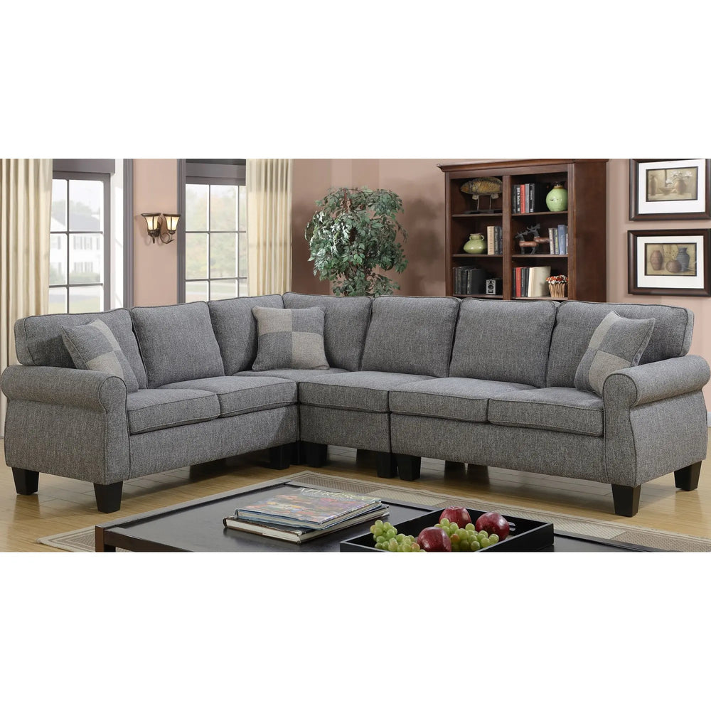 Settle back into this sectional sofa and experience relaxation at its best. Covered in durable, easy-to maintain 100% polyester fabric, the attractive sectional offers lasting comfort you'll appreciate. The neutral grey color and straightforward design make it a natural addition for a wide range of interiors and allow it to seamlessly fit with existing decor schemes. Adjustable armless chair and matching accent pillows make this sectional a sophisticated choice for any living space.