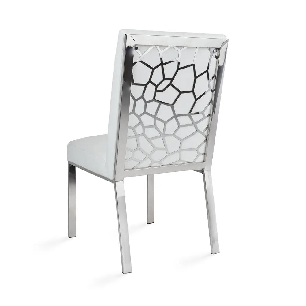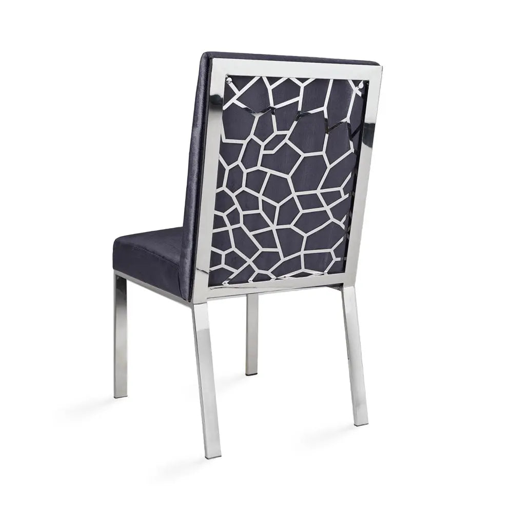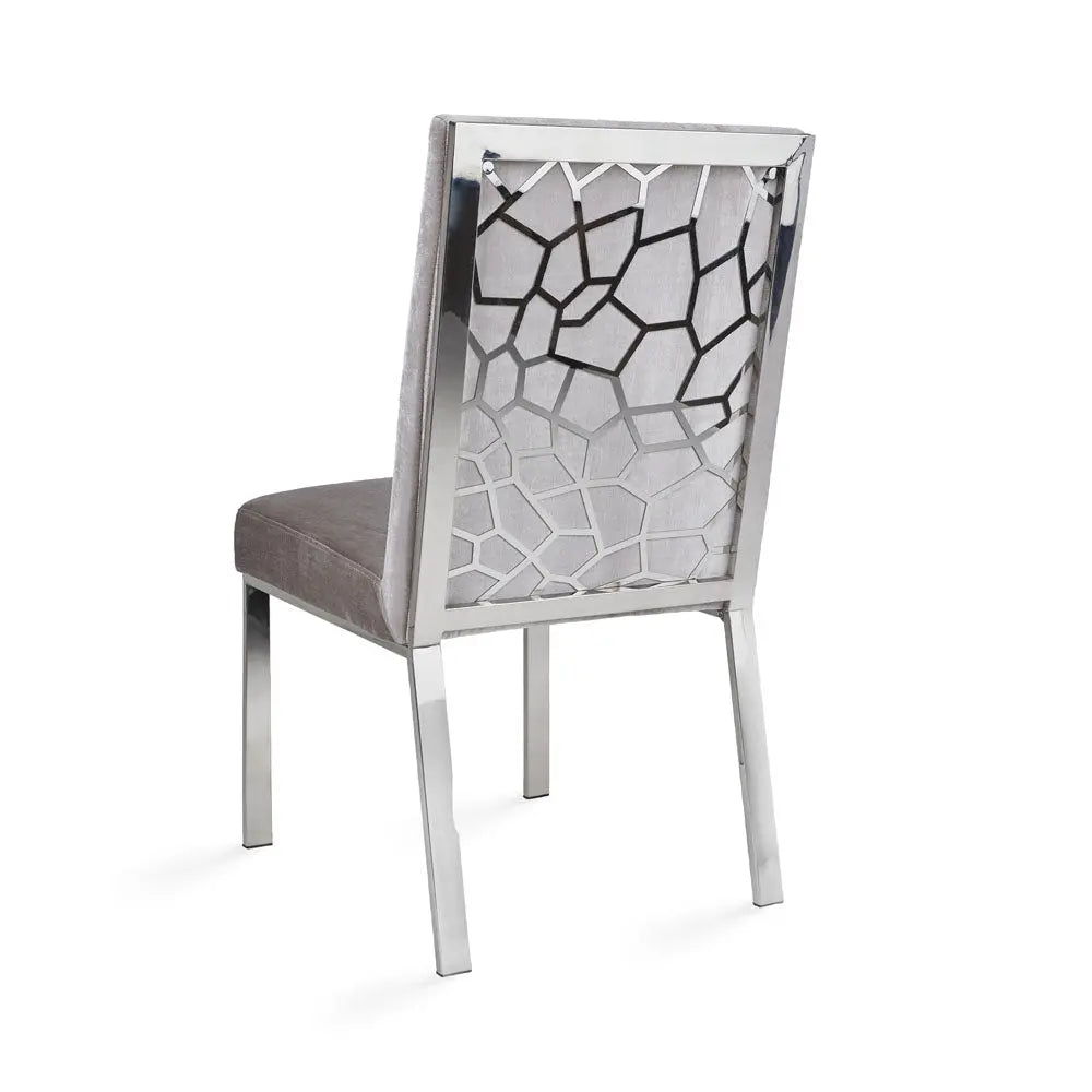 The Wellington dining chair boasts an intricate geometric design on the back of the dining chair that will be sure to grab attention and spark conversations in your dining spaces. While seemingly classic from the front, the back of the chair features flair and a striking design. Plush padded seat and back make for exceptionally comfortable seating. The back, base, and legs style of construction is modern, durable, and reliable.