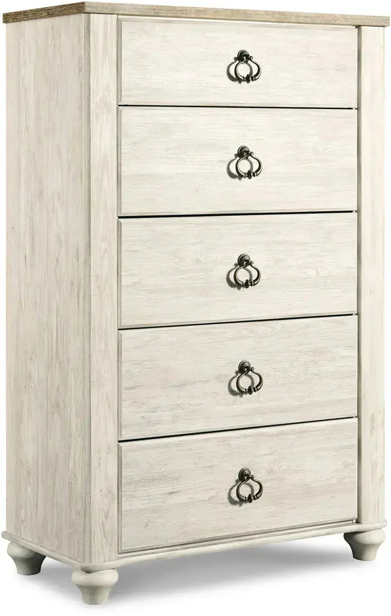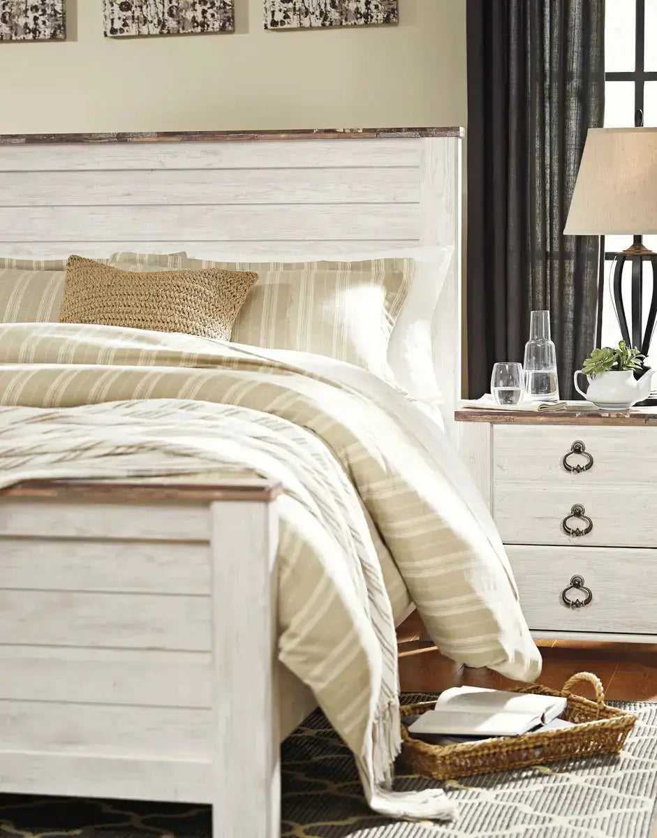 Ashley Willowton Panel Bedroom Set B267 - White / Twin / Bed+Dresser/Mirror+1Nightstand is backordered and will ship as soon as it is back in stock.